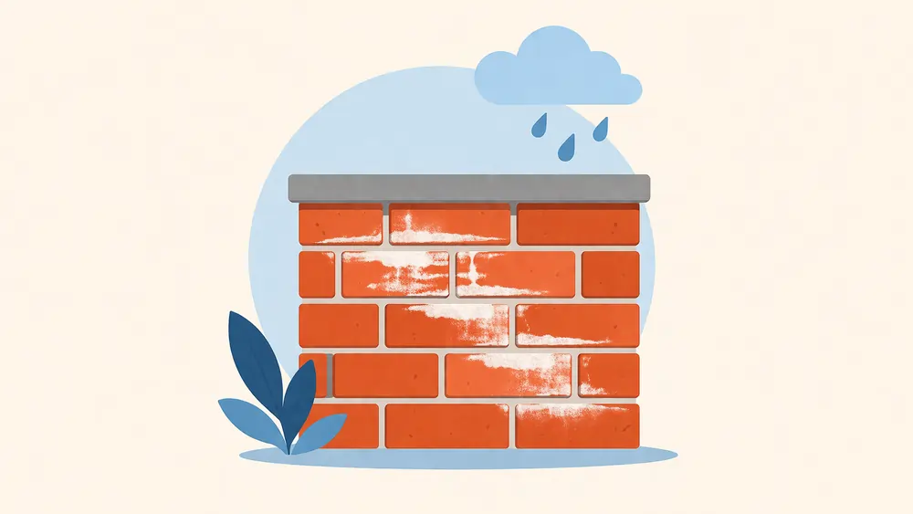 Белый налёт на кирпиче после дождя не всегда означает беду, но почти всегда означает движение влаги. Если это разовый сухой порошок без других симптомов, чаще всего речь о высолах; если след возвращается, идёт из одних и тех же зон или сопровождается разрушением, искать нужно уже не налёт, а источник воды.
