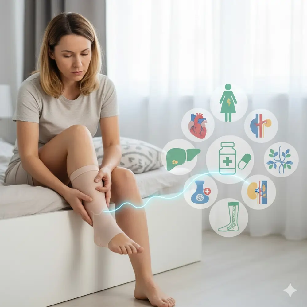 Важно другое: сам по себе отёк — не диагноз. Это симптом. Он может быть связан с венами, сердцем, почками, печенью, гормонами, беременностью, лекарствами или травмой.